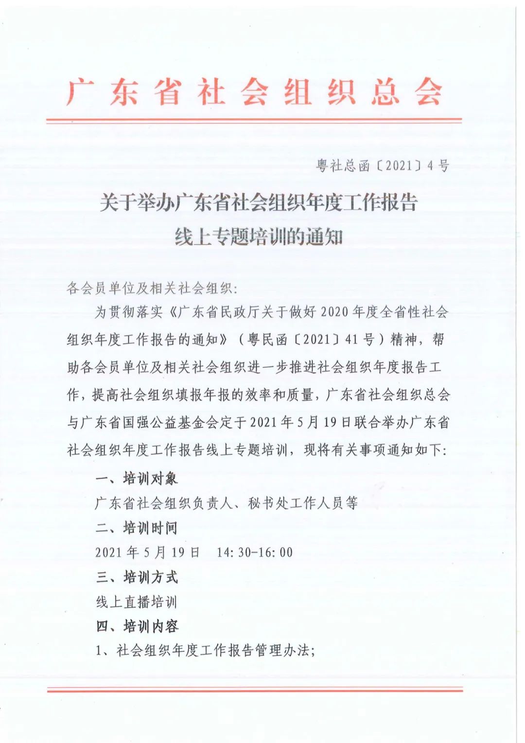 >文章正文:关于举办广东省社会组织年报业务线上培训的通知