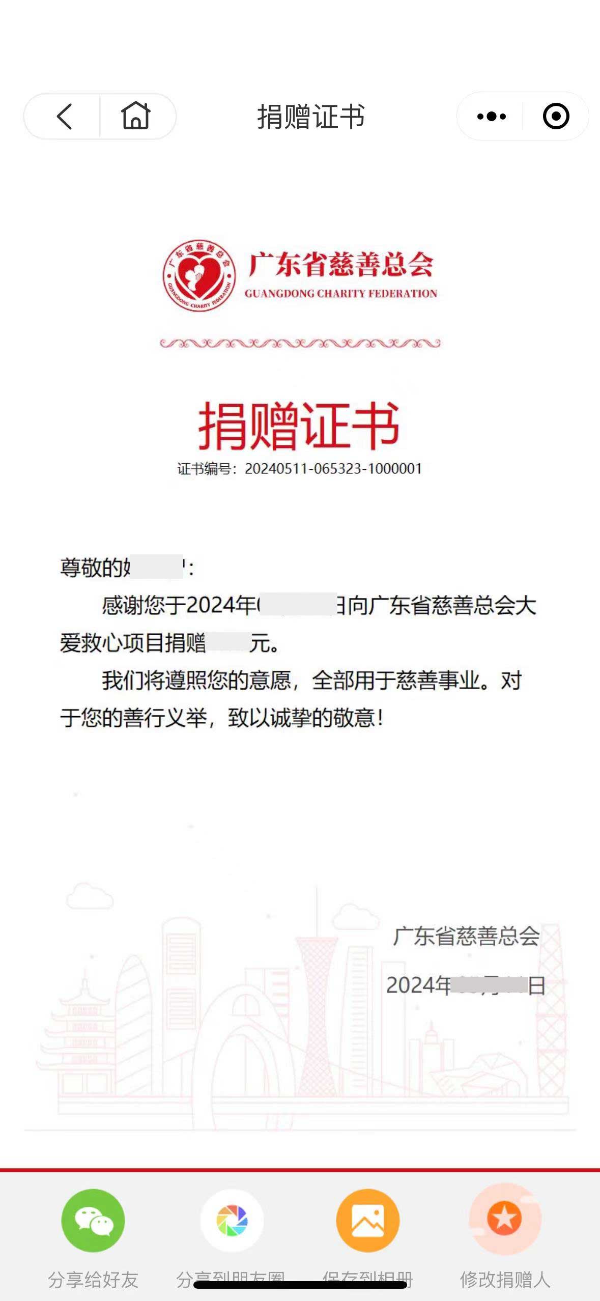 4.领取电子捐赠票据和捐赠证书