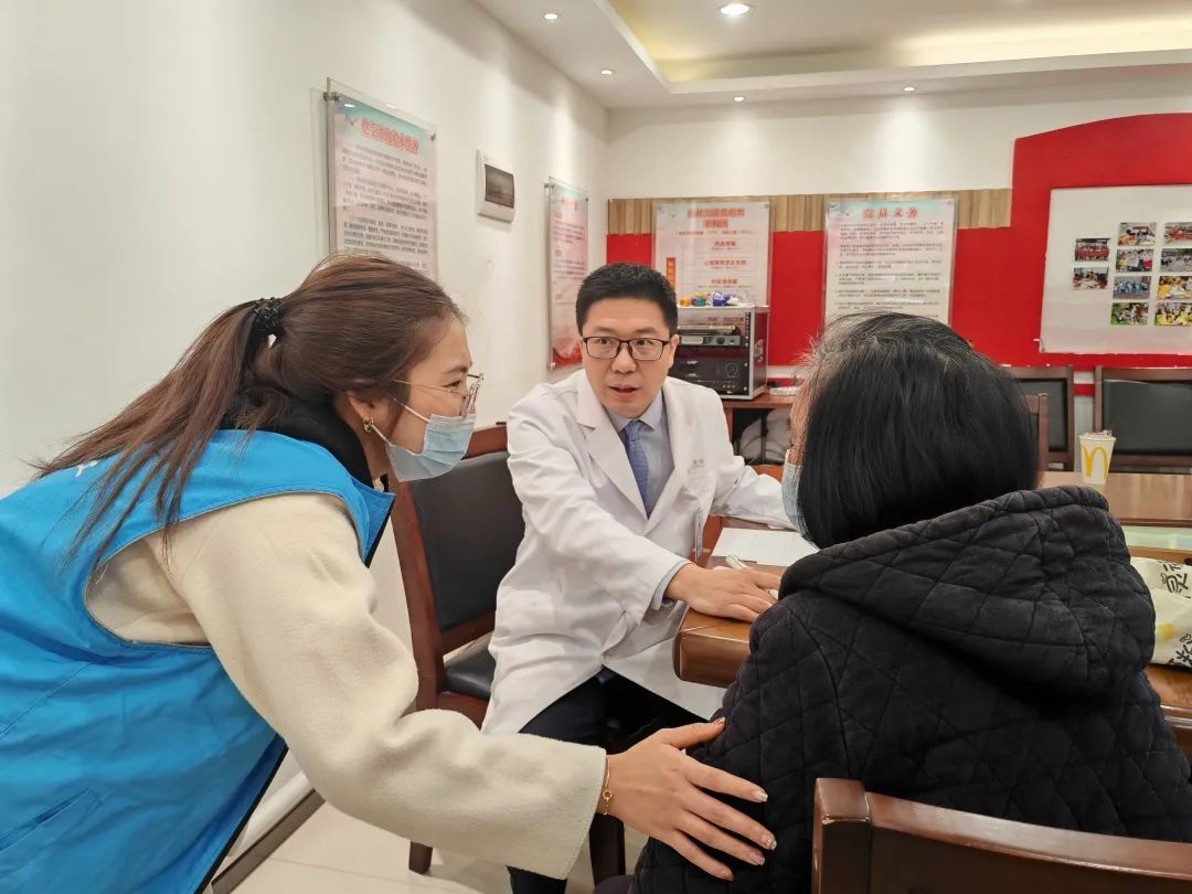 为了让行动不便的困难群众和特殊群体也能享受到健康科普服务,医护人员带队上门探访了3户困难家庭。家住大江村的江婆婆,因脑梗导致腿部行动不便,存在着“看病难”问题,平时外出就医都需要家属陪同。来自和祐医院老年科的冯国飞医生详细了解了江婆婆的康复状况和服药情况,为江婆婆进行了身体检查并给出了针对性治疗建议,还交代了日常康复需要注意的事项。江婆婆听完之后,向冯医生和社工竖起了大拇指,说:“真是太谢谢你们了,以前因为我这腿不方便,看病总是个大难题,现在有了你们的帮助,我感觉心里踏实多了!”